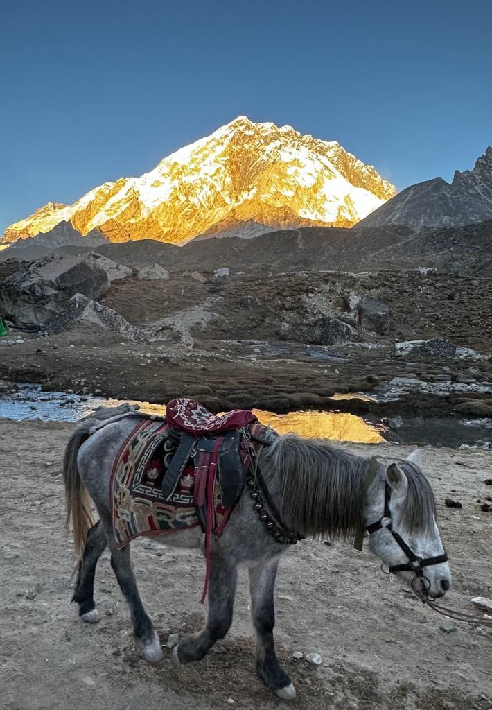 La vallée s’élargit, nous bifurquons a gauche pour une montée en pente douce vers Lobuche perché a 4900m. Point de passage vers le camp de base de l'Everest a 5340m ou vers KalaPatar ("Rocher noir" en Népalais) a 5545m; ce sera notre objectif pour demain avec a la clef un nouveau panorama exceptionnel sur l'Everest.